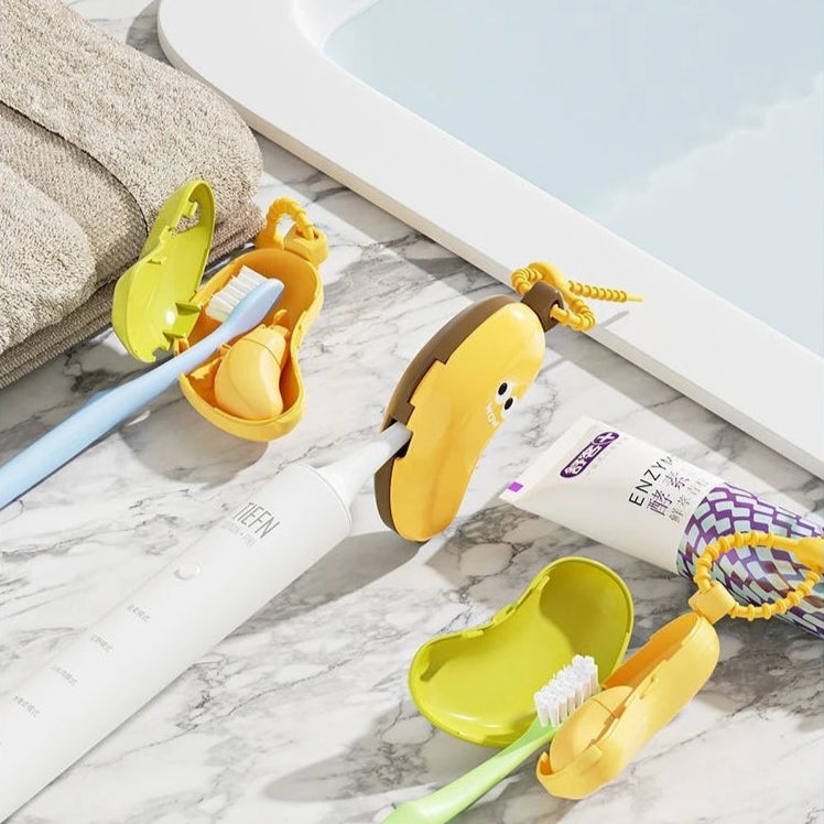 The BananaBuddy™ Toothbrush Case keeps your toothbrush bristles covered, shielding them from dust, dirt, and bacteria that can collect in your bag or bathroom. By preventing contact with unclean surfaces, it helps reduce the risk of germs transferring to your mouth when you brush.